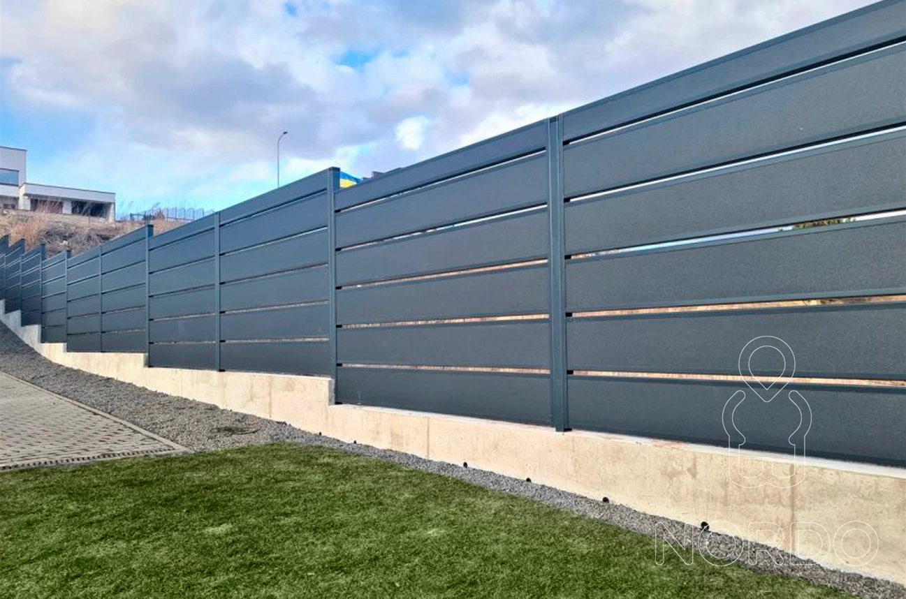 Ранчо XPS представляет собой горизонтальные панели увеличенного размера, максимальная высота панели составляет 310 мм. Дизайн забора можно менять за счёт комбинирования панелей разных высот с разными зазорами, комбинирования цветов, добавления вставок из других материалов.